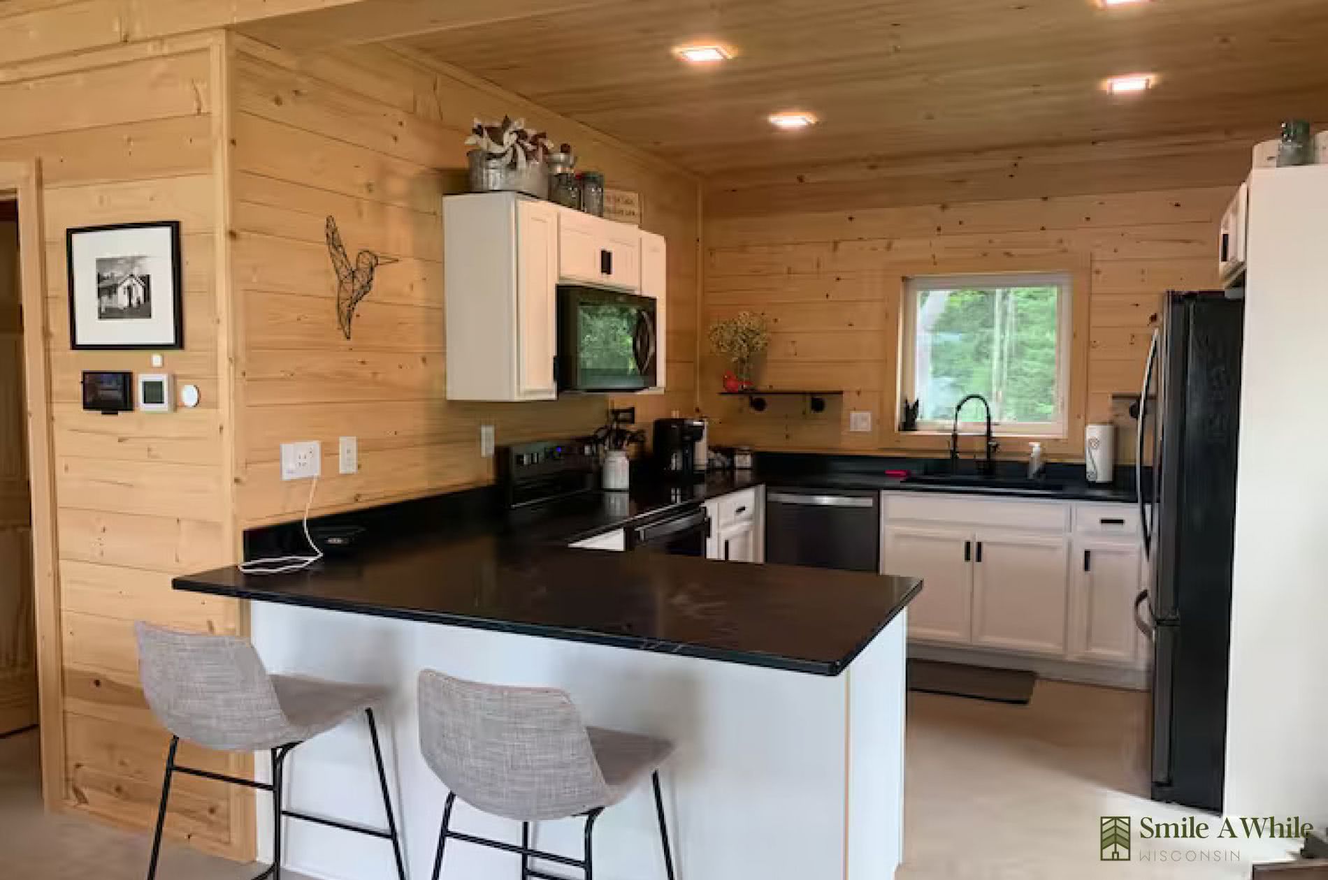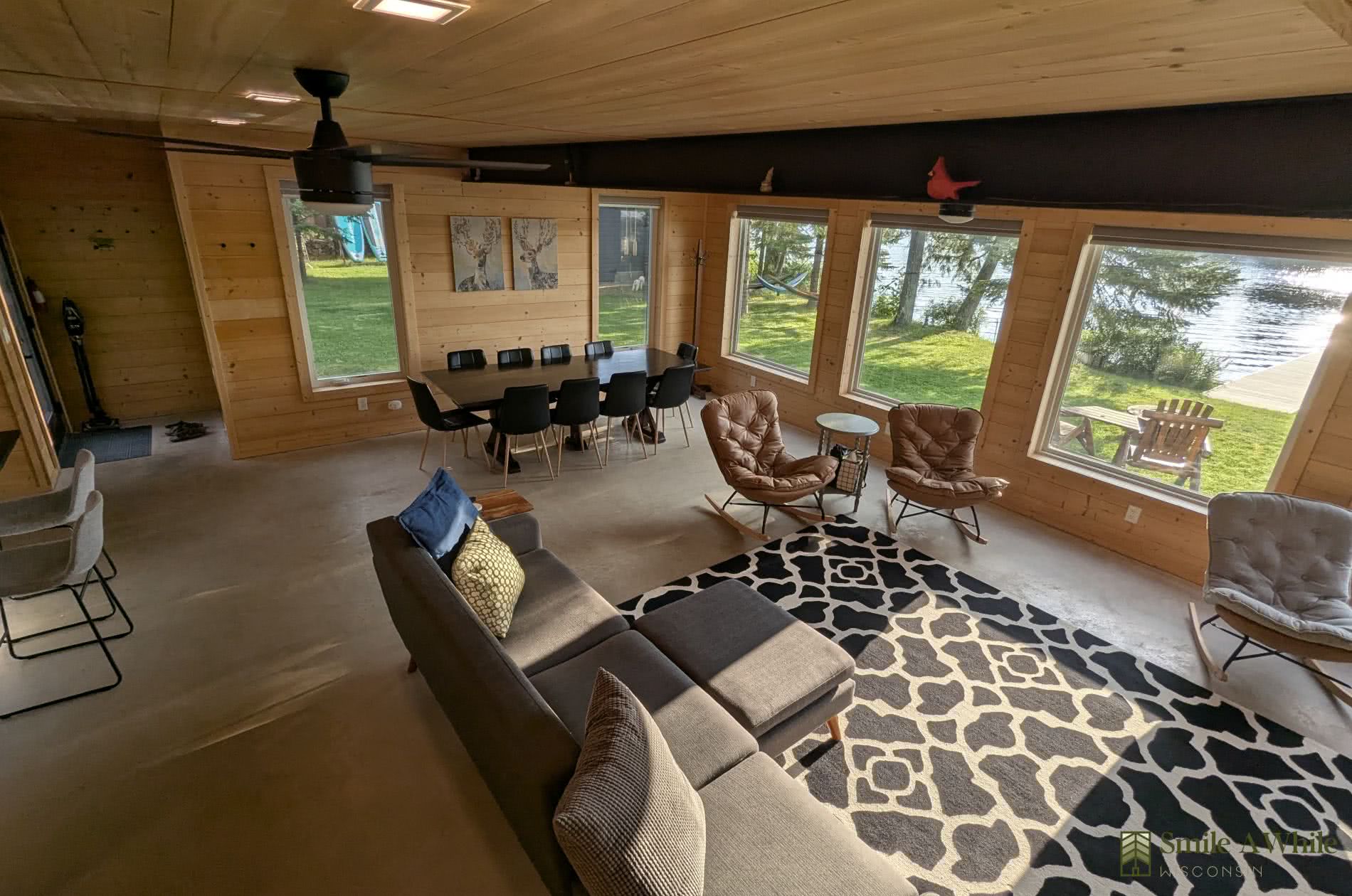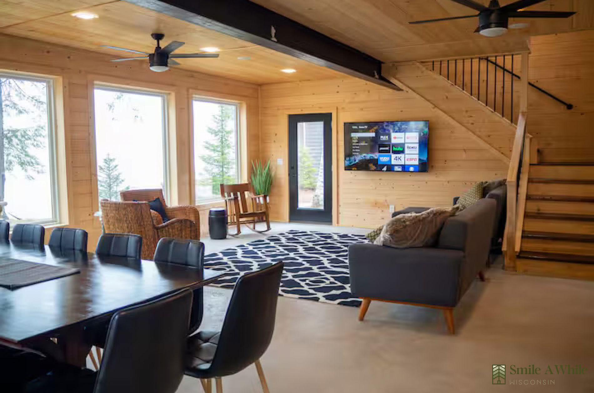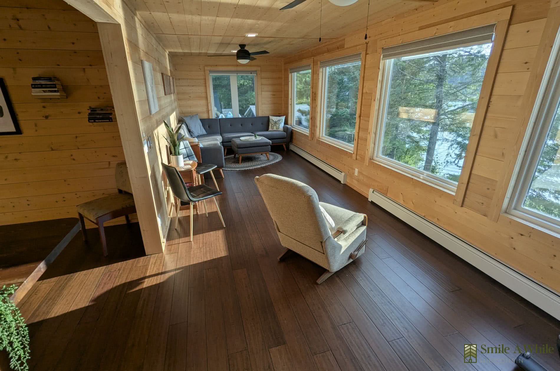 經過全面升級和精心維護,這棟房屋始終保持最佳狀態。屋內鋪設了現代化的硬木地板和地毯,寬敞的公共空間使這間小木屋成為每個人舒適的住所。