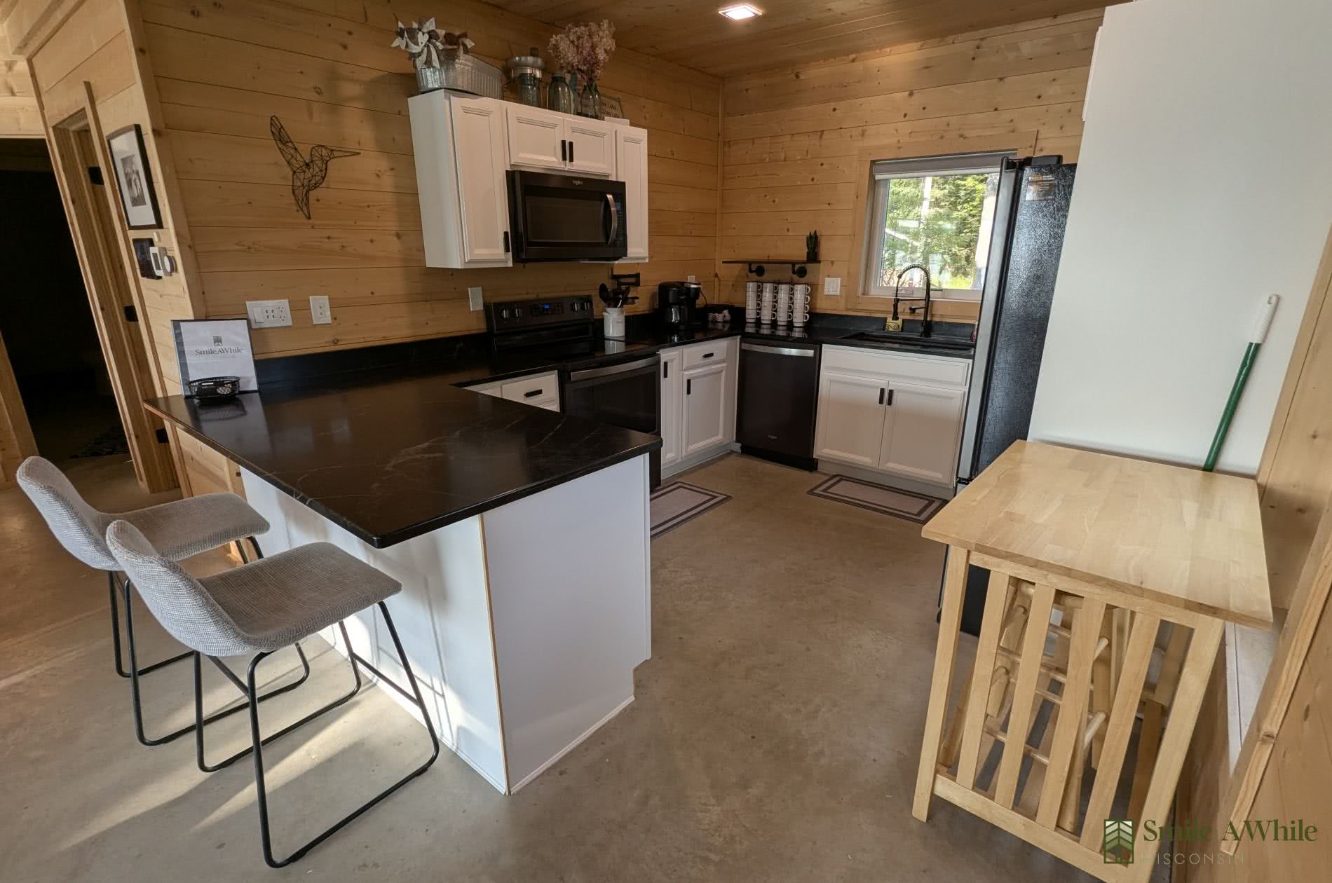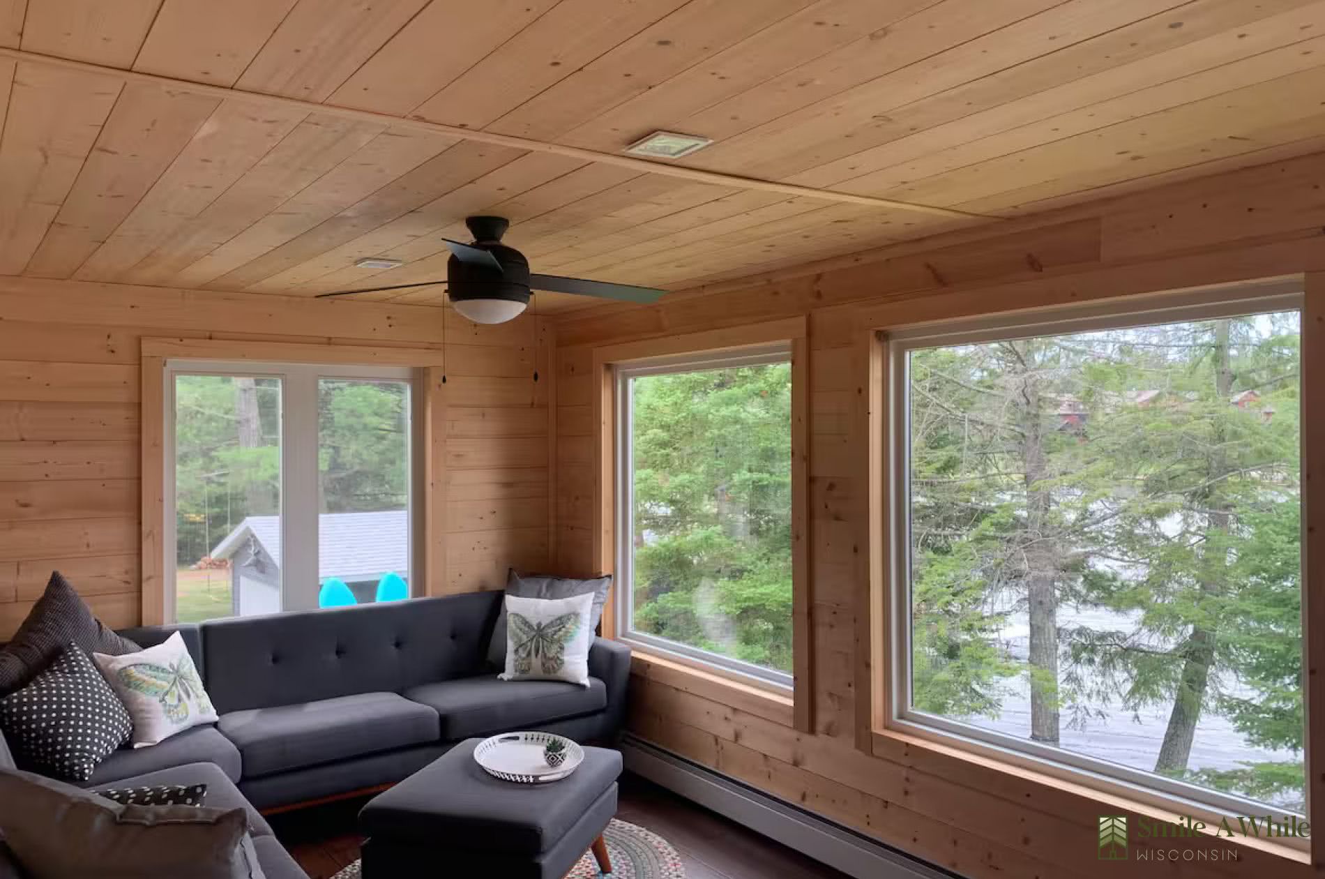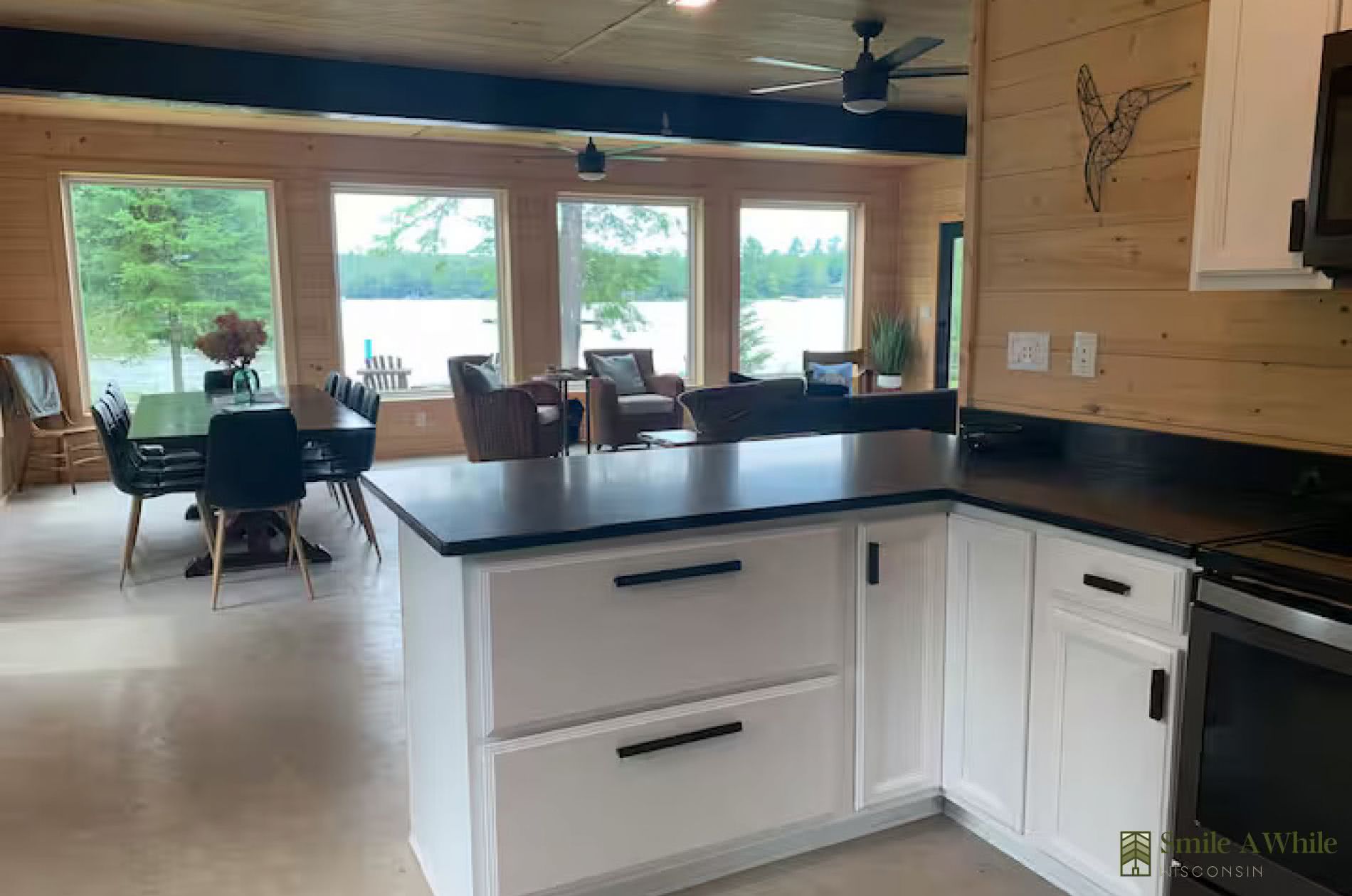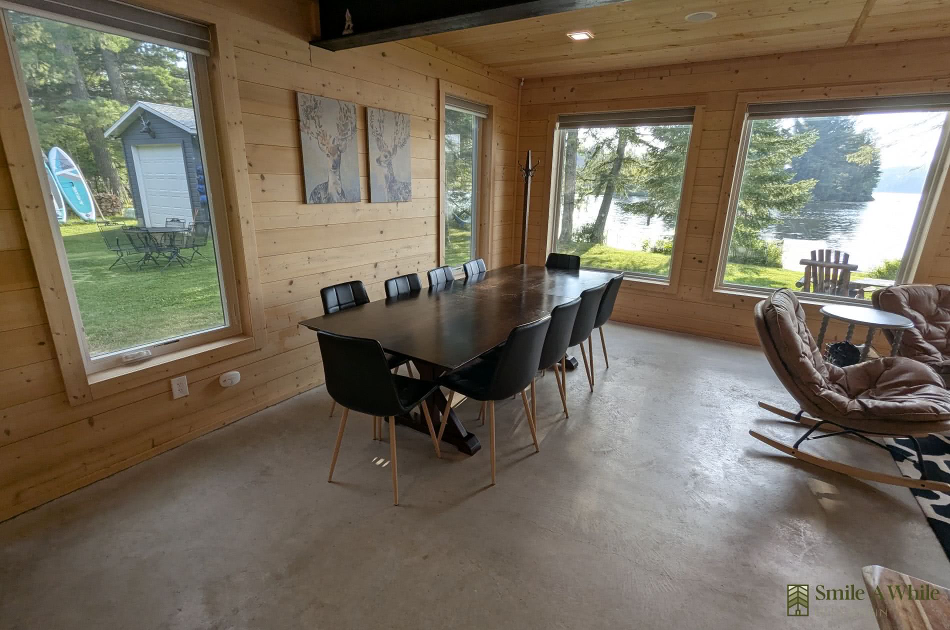 經過全面升級和精心維護,這棟房屋始終保持最佳狀態。屋內鋪設了現代化的硬木地板和地毯,寬敞的公共空間使這間小木屋成為每個人舒適的住所。