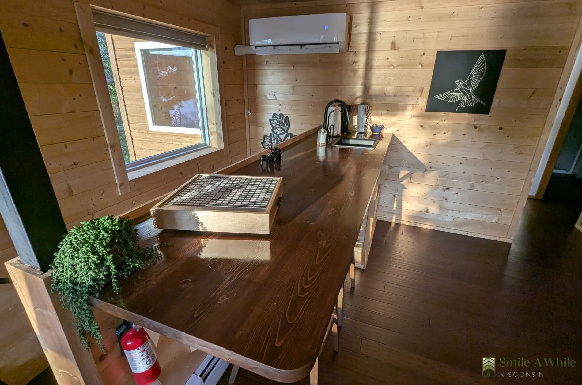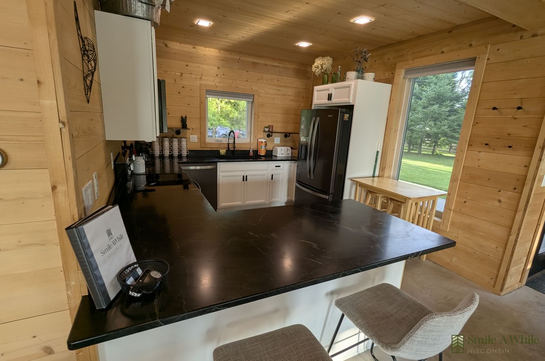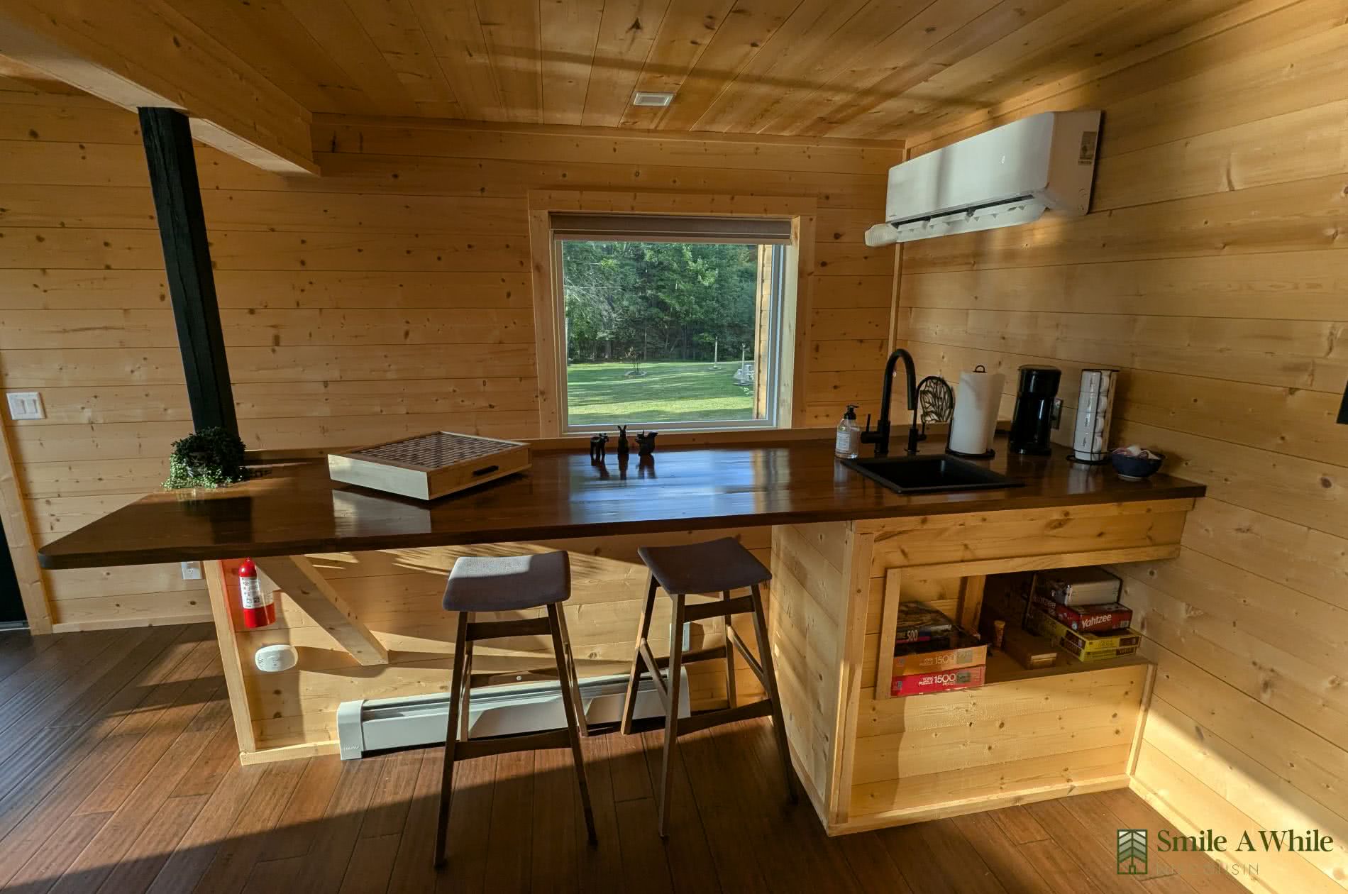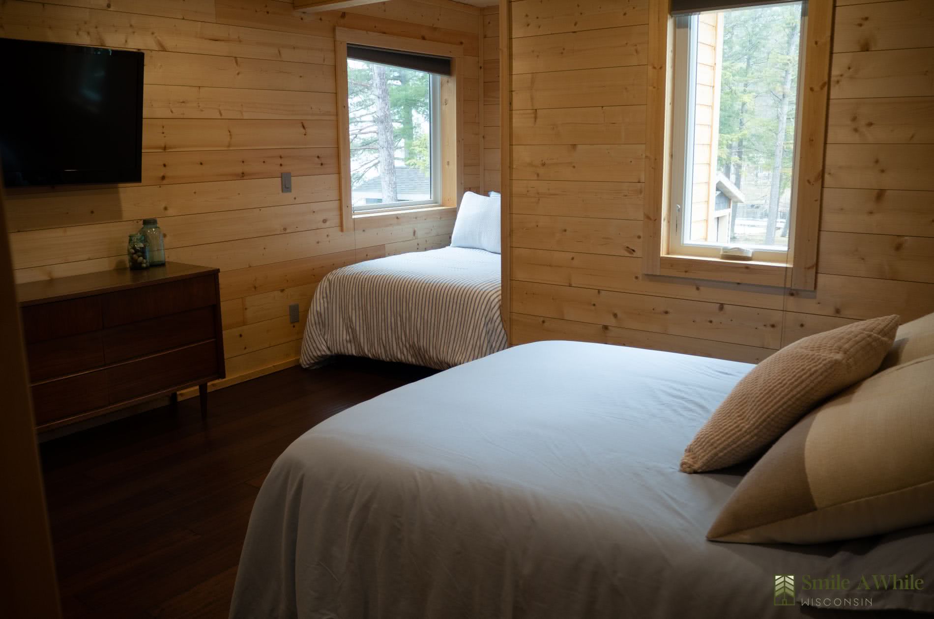 經過全面升級和精心維護,這棟房屋始終保持最佳狀態。屋內鋪設了現代化的硬木地板和地毯,寬敞的公共空間使這間小木屋成為每個人舒適的住所。